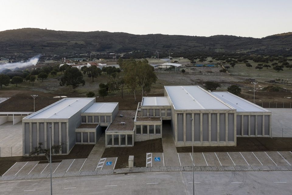 초등학교의 교실 건물은 긴 복도를 통해 다양한 교실 영역을 연결합니다.